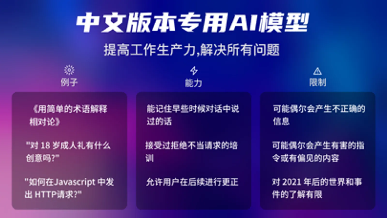 我们的AI助手聊天机器人可以完成诸多任务,拥有无限的可能性: