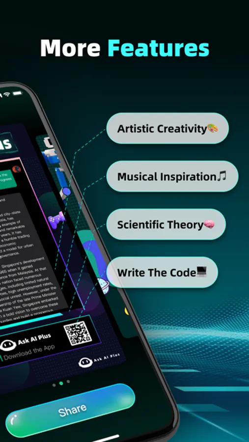 Ask AI Plus is an artificial intelligence software based on a Large Language Model. You can chat with AI, engage in literary writing, design images, explore creative concepts, have voice conversations, practice English speaking, and receive translation assistance. It is here to help you solve various issues in your work, studies, and daily life.