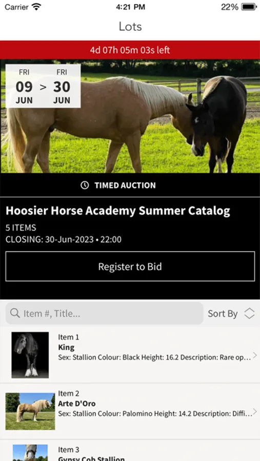 Hoosier Horse Academy, located in Danville, IN, specializes in finding the perfect horse to suit your needs. With the HHA app, you can preview, watch and bid in our auctions from your mobile / tablet device. Participate in our sales while on-the-go and gain access to our following features: