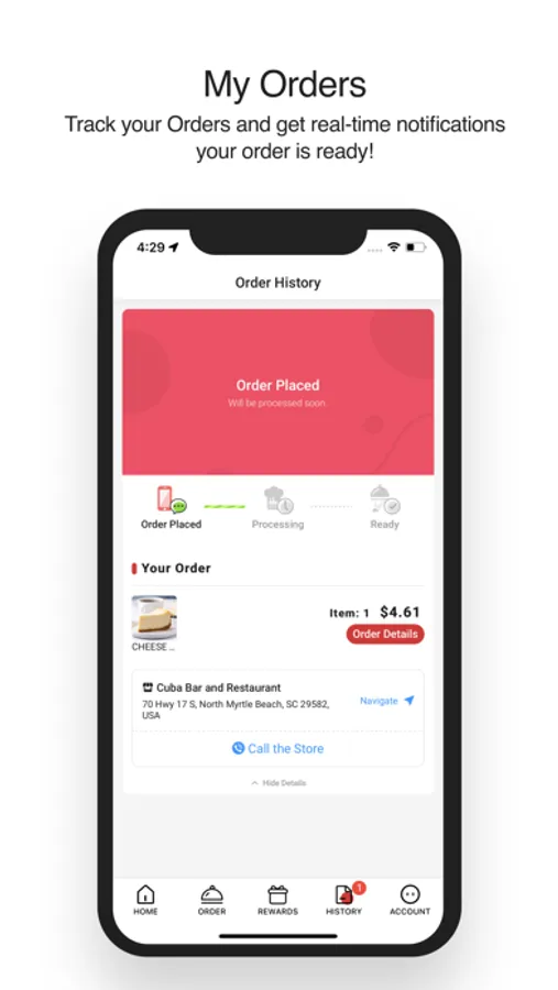 Track your Orders and get real-time notifications your order is ready!