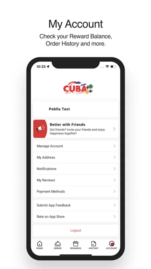 Check your Reward Balance, Order History and more.