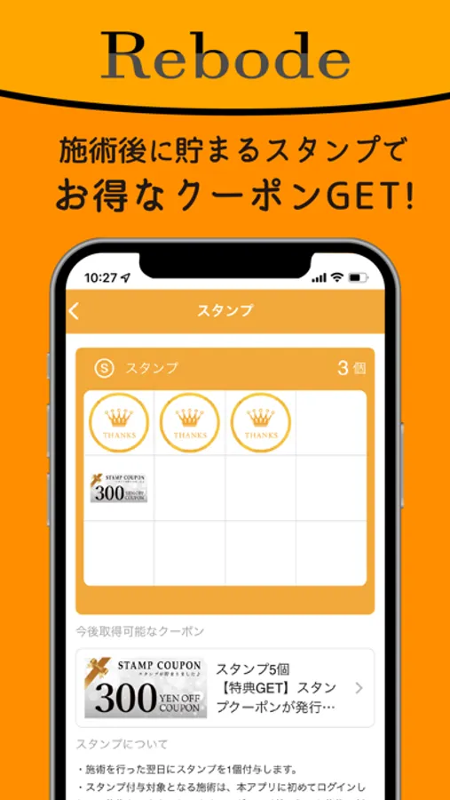 ご来店スタンプをためるとお得なクーポンが発行されます(ご利用条件がある場合がございます)