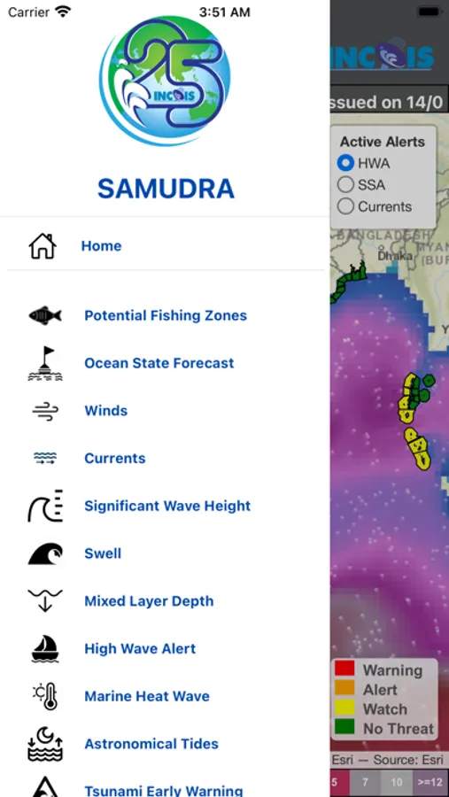The app empowers users with real-time updates and critical alerts on oceanic disasters such as tsunamis, high waves, swell surge alerts, and ocean current alerts etc. ensuring that individuals and communities stay informed to take necessary precautions.