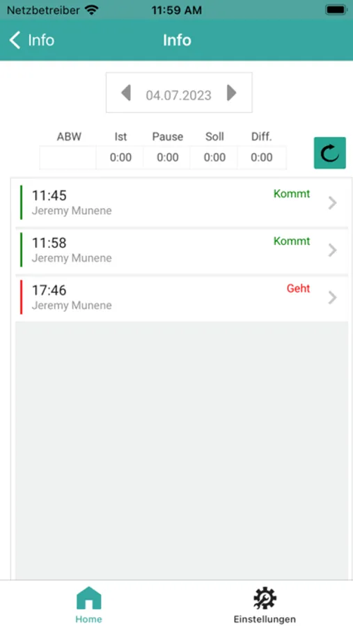 a. Kommen und Gehen Buchungen.