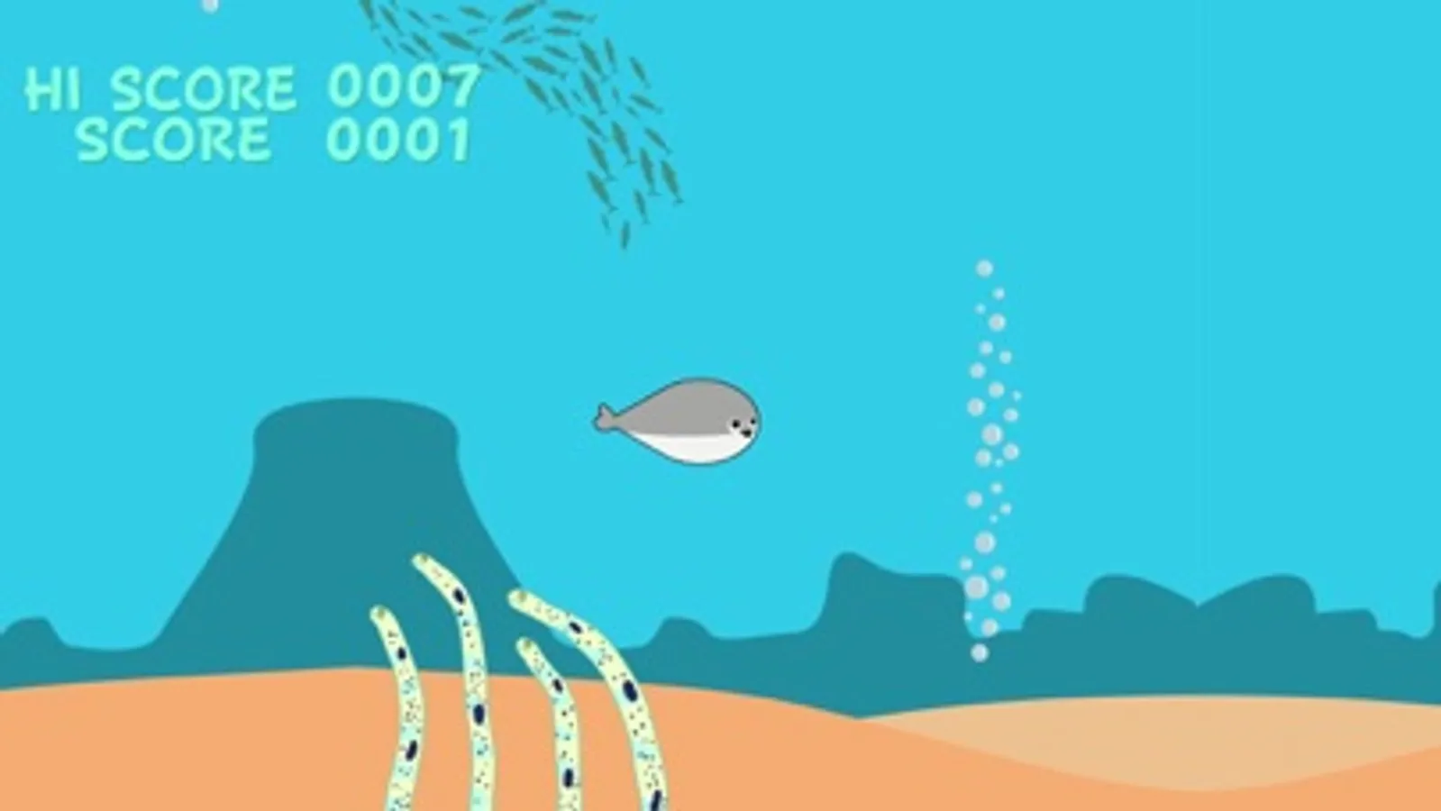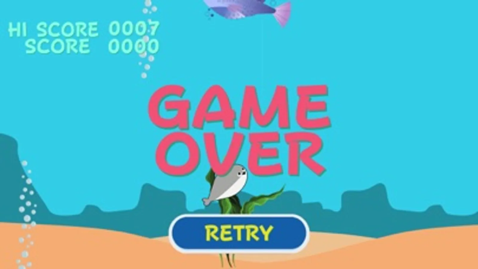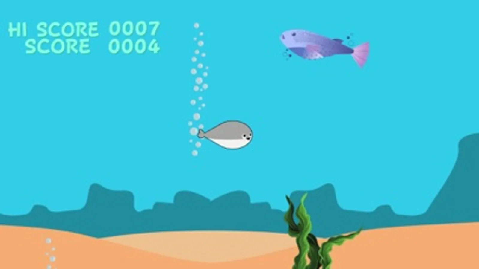 上昇しすぎたり、潜りすぎたり、障害物に当たるとゲームオーバーです。