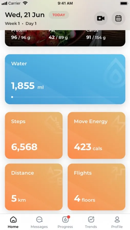 The app integrates with Apple Health to show your daily activity - distance, steps, active energy, and flights to help you better achieve your goals.