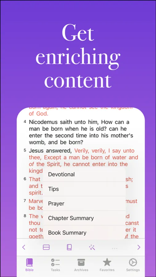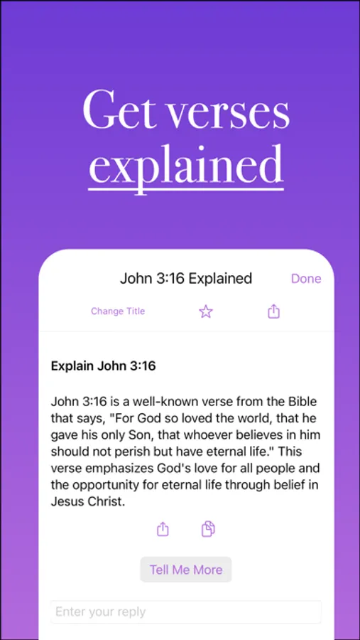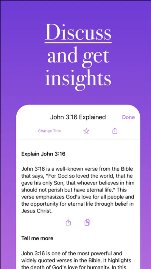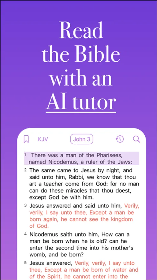 The AI is integrated directly into your Bible-reading experience. As you read the Bible, you can ask the AI to explain a verse, give you practical tips, and more with just one or two taps.