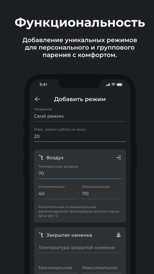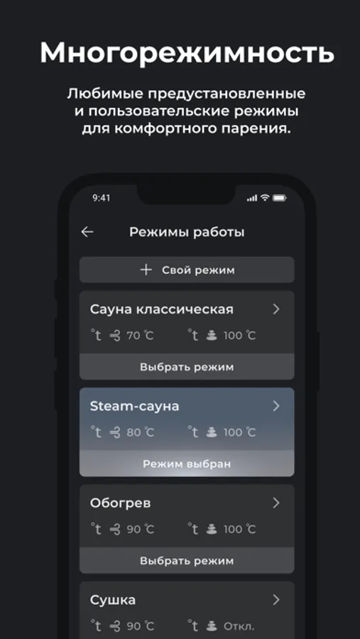 Функциональность — добавление уникальных режимов для персонального и группового парения с комфортом.