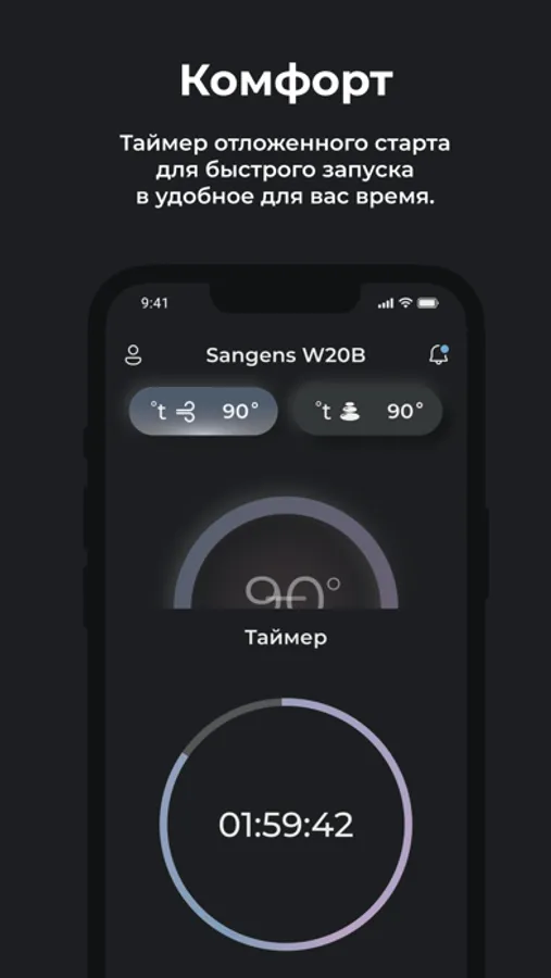 Комфорт — таймер отложенного старта для быстрого запуска в удобное для вас время.