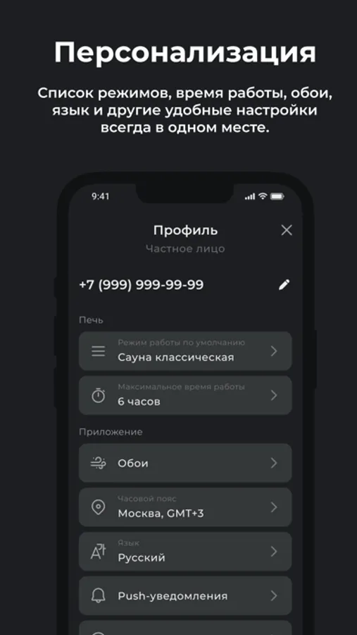 Персонализация — список режимов, время работы, обои, язык и другие удобные настройки всегда в одном месте.