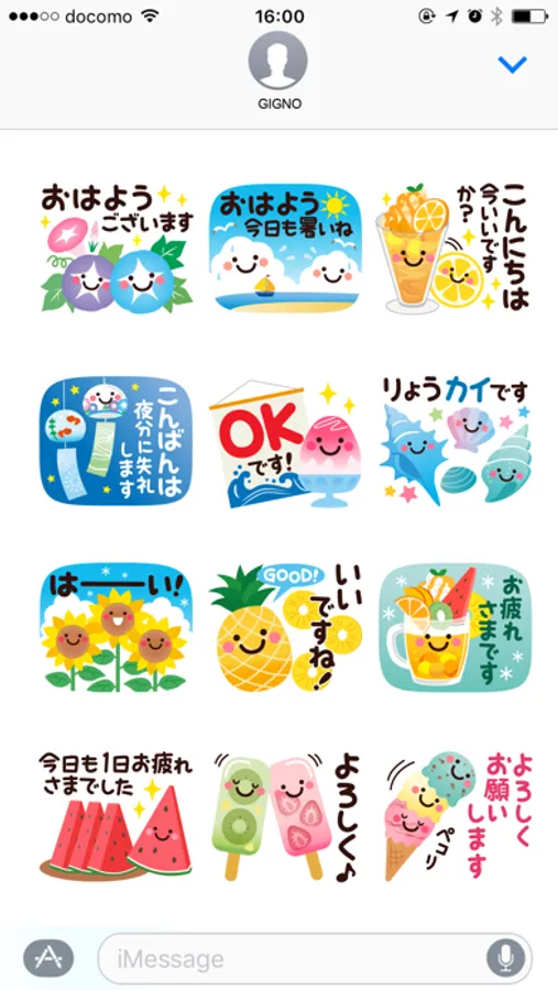 ちょっとだけ大人の、爽やかキュートな夏スタンプ。優しい言葉と一緒に、毎日使える便利なスタンプです