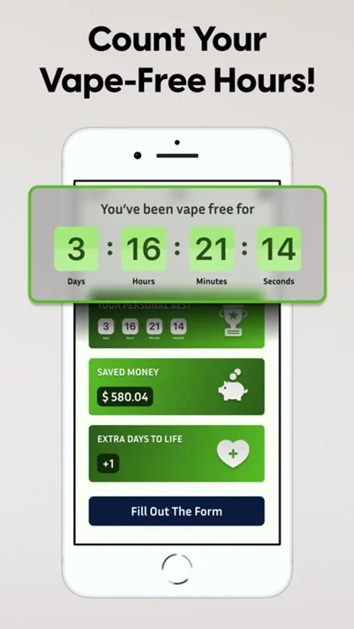 Vape-free Hours Counter: Be proud of every vape-free moment. Watch the hours accumulate as you keep the vape away.