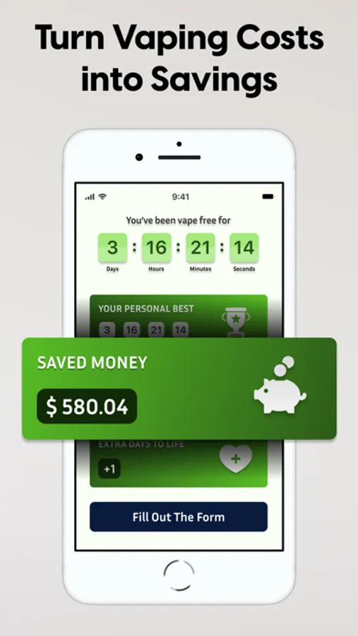 Money Saved Tracker: Be surprised at how much you can save. Our app shows you how much money you've saved by not vaping.
