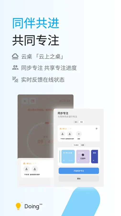· 同步专注:与同伴共同同步进行专注,实时查看同伴进展