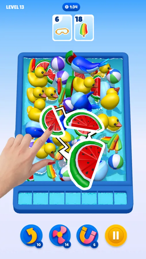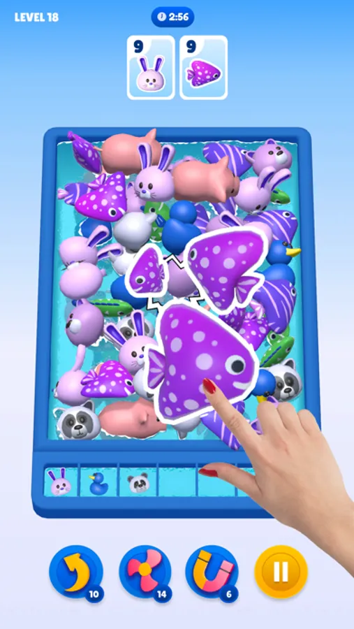* Keep sorting and matching objects until you clear all tiles from the screen