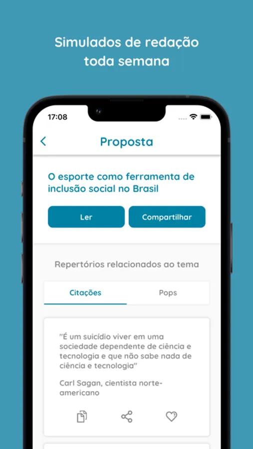 Por isso, o aplicativo Citaí tem como objetivo reunir repertórios socioculturais para facilitar os estudantes a fazerem redações do Exame Nacional do Ensino Médio (ENEM) e diversos outros vestibulares. Devido ao fato de que essas informações estão espalhadas por toda internet, nosso aplicativo se torna um facilitador.