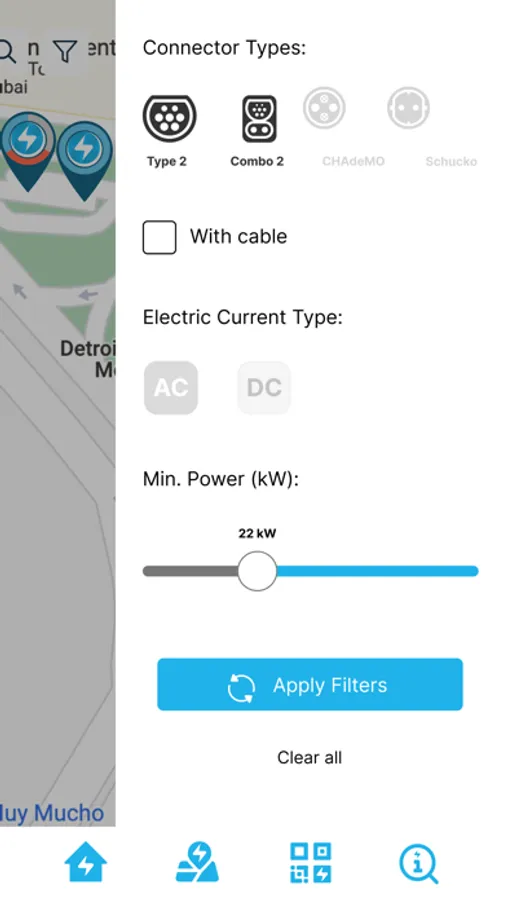 Filter Options: Our application lets you filter chargers based on output and connector types compatible with your EV, providing a seamless charging experience.