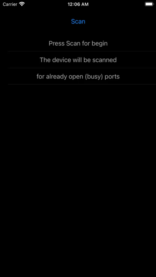 Application scans ports on the device and displays busy ports opened by other applications.