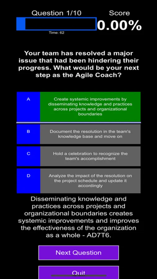 - Detailed Feedback: Every question is followed by detailed feedback, ensuring you understand not just the 'what,' but also the 'why,' empowering you to master Agile concepts in a fun, intuitive, and seamless way.