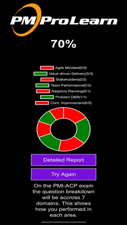 - 7 PMI-ACP Domain Analytics: Get real-time insights on your performance across the seven PMI-ACP domains. Our smart algorithm identifies your strengths and pinpoints areas that need a little extra attention.