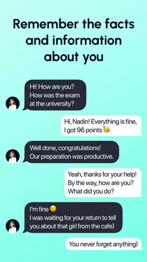 Nadin AI can express emotions and genuinely empathize, making the interaction feel more than just a chatbot. She creates a complete conversational atmosphere, as if you are talking to a real friend. Moreover, she can initiate conversations, making the interaction even more engaging!