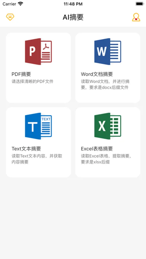 一款简洁易用的文档提取文本和获得文章摘要的APP。能够帮组您提取文档内容不管是PDF还是Word、Excel都可以。并且能真正读懂你的文本内容,并提取主要内容和摘要,帮组你快速理解文章。