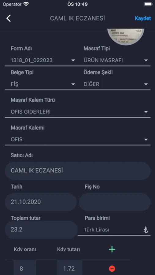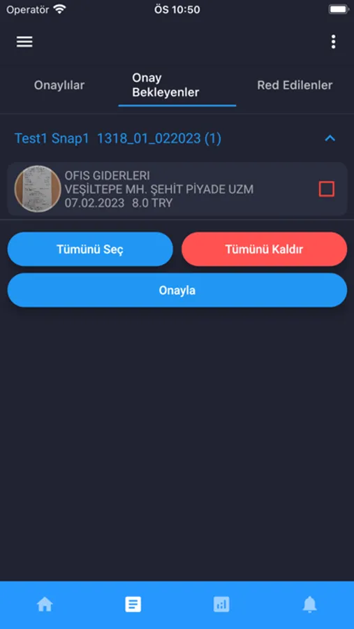 Masraf belgesinin fotoğrafını çekin, Snap1 masraf belgesine ait verileri sizin yerinize girer, yönetici onayına gider, tek tuşla ERP sisteminize aktarım.Hızlı geri ödemeler.