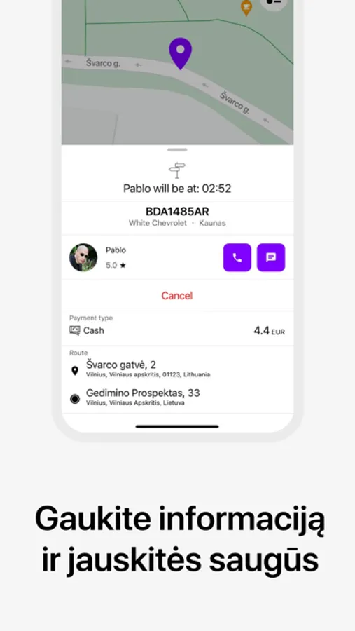 4. Optimizuotas maršrutas: Mūsų vairuotojai pasirenka optimalius maršrutus, kad galėtumėte greitai pasiekti savo paskirties vietą.