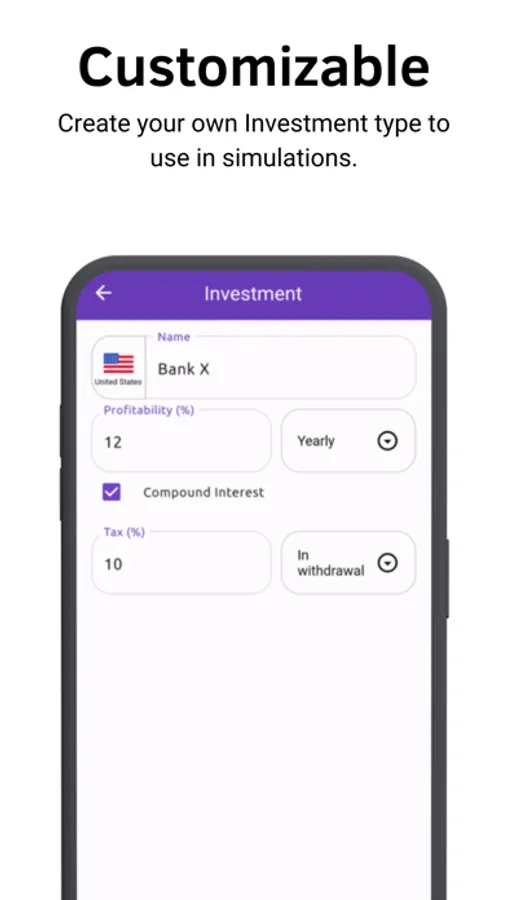 The application has pre-configured the main financial applications of several countries for you to simulate, but you can also create your own.