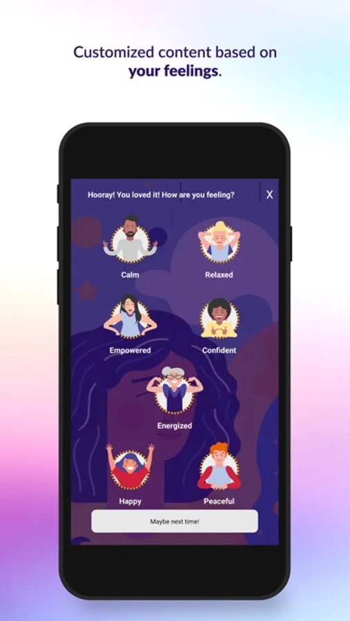 Overall, the app focuses on personalization, motivation, bite-sized content, and mood tracking to support users in their well-being journey.