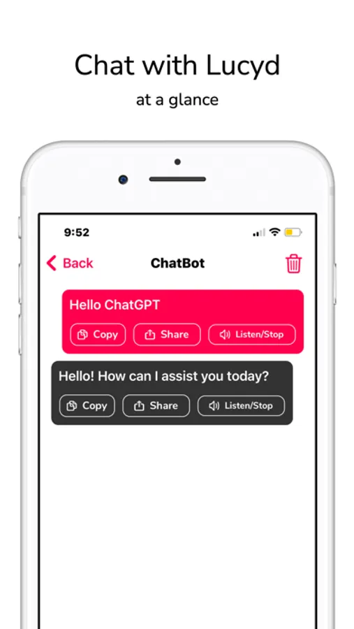 The Lucyd app empowers you to effortlessly voice your inquiries and receive responses from the AI platform, all without lifting a finger. Whether through Siri integration or the app's user-friendly interface, you can connect seamlessly to your preferred wearable device or directly access the Lucyd app on your smartphone. Engage with the voice assistant instantaneously, capitalizing on the unparalleled communicative efficiency and sophistication of human speech. Through this innovation, you can tap into boundless information via the world's most preeminent and widely recognized AI language model.