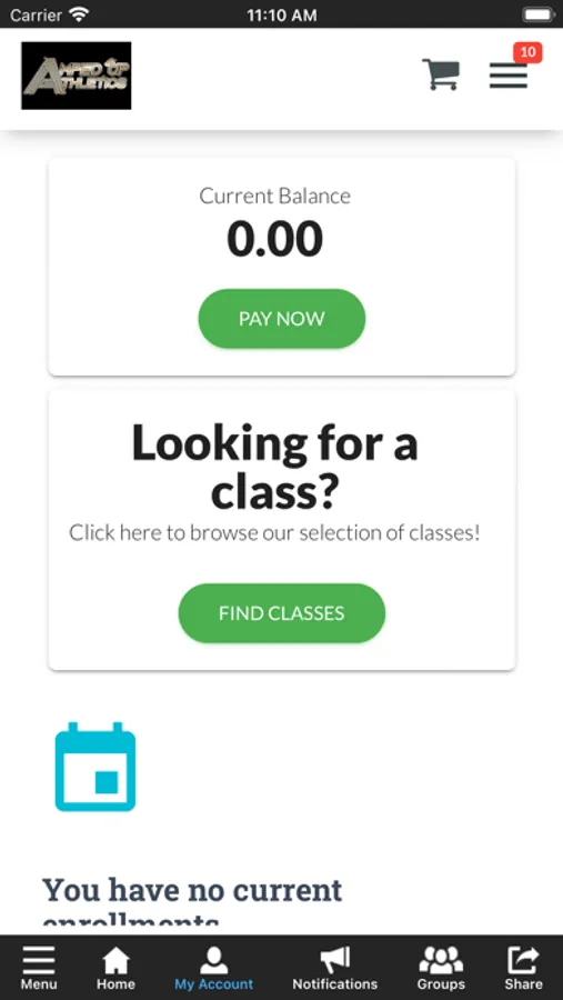 The AUA app allows you to manage your account with ease, register for classes, parties, and special events. You'll also receive important notifications about class changes, closings, registration openings, special announcements, and upcoming events.