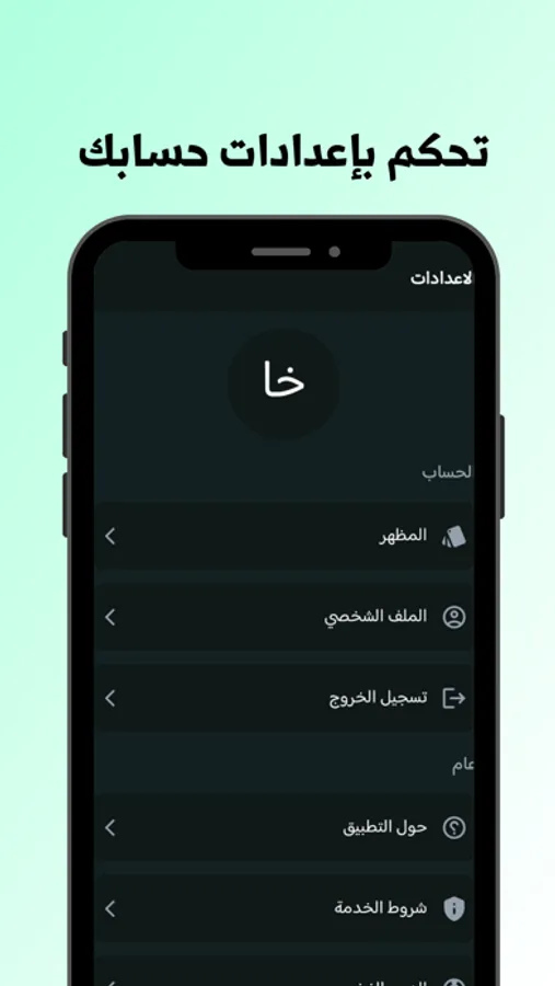 - الإعدادات : يمكنك الوصول فيها الى بياناتك حسابك الشخصي وسهولة التحكم بها و ايضاً يمكنك تغيير الوضع الليلي او النهاري للتطبيق وغيرها من الخصائص المعتادة.
