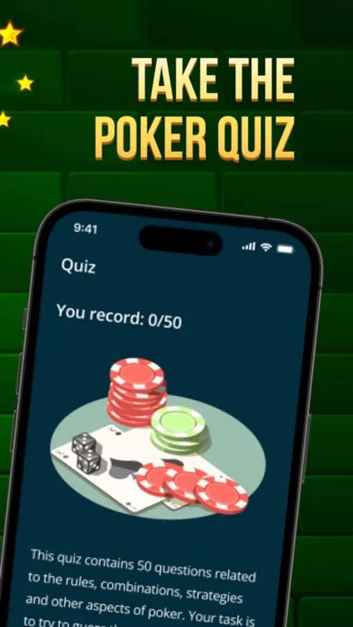 Welcome to a world of knowledge and excitement with PokerStar! Test your knowledge of poker, strategies and the rules of the game. Answer exciting questions, overcome challenges and show your expertise in poker quizzes. Compete against friends or other players and show off your knowledge to become the real star of poker quizzes. Ready to take on the challenge of becoming a poker master? Join PokerStar now!