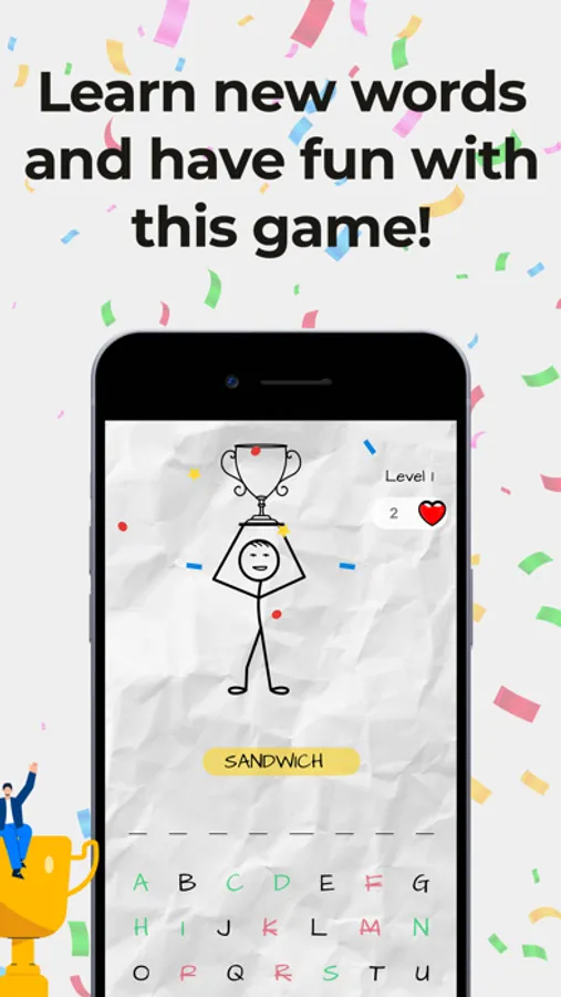 Each category has a large list of words and, upon selecting your favorite category, you are challenged to guess the hidden word. The available letters are displayed on the screen and you can choose them one by one to try and form the correct word. But beware, you only have a limited number of attempts before you are hanged!