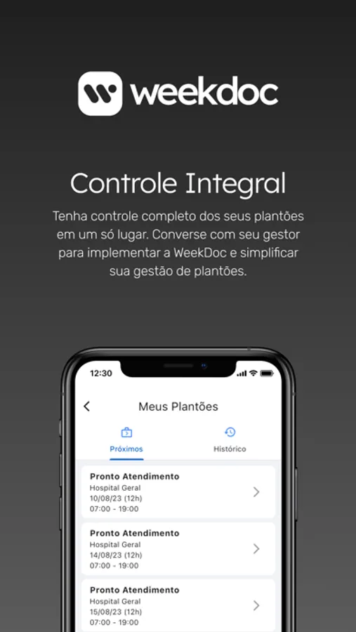 Apresentamos a WeekDoc: a solução completa e eficaz para a gestão de escalas médicas, aprimorando a comunicação entre gestores, coordenadores e médicos. Para os profissionais de saúde, a plataforma permite visualizar agendas, realizar trocas, doações e ofertas de plantões, receber alertas e acessar informações de pagamento atualizadas. Já para os gestores, a WeekDoc simplifica a criação de escalas, centraliza documentos e notas fiscais, além de gerar relatórios precisos e completos. A WeekDoc é a chave para uma gestão médica mais eficaz, transparente e colaborativa. Junte-se a nós e descubra como podemos transformar e simplificar o gerenciamento das escalas médicas. Simplifique, otimize e inove com a WeekDoc ao seu lado.