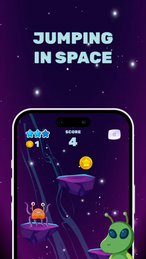 You have to take on the role of an alien who seeks to collect as many coins as possible. Your task is to masterfully control the character and catch coins. To do this, you will need to carefully jump on the rocks and collect coins on your way. Use taps on the screen to direct your character to the left or right. Beware of misses! If you do not catch the coin and miss the rock, one of three lives will be taken away from you. Be careful and focused to avoid mistakes and save your lives. The collected coins will be your reward for skill and skill. Exchange them for various skins for your character and a variety of locations. Each new skin and location will add a special charm and variety to your gaming experiment.