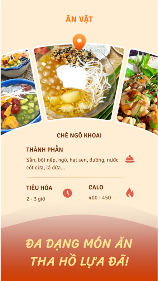 Một lần chạm trên màn hình, Ăn gì ta? sẽ cho bạn thấy những gợi ý bất ngờ cho món ăn, hấp dẫn vô cùng! Mỗi món ăn sẽ có chi tiết về nguyên liệu và lượng calo trên mỗi phần ăn giúp bạn đưa ra được những quyết định chính xác nhất!