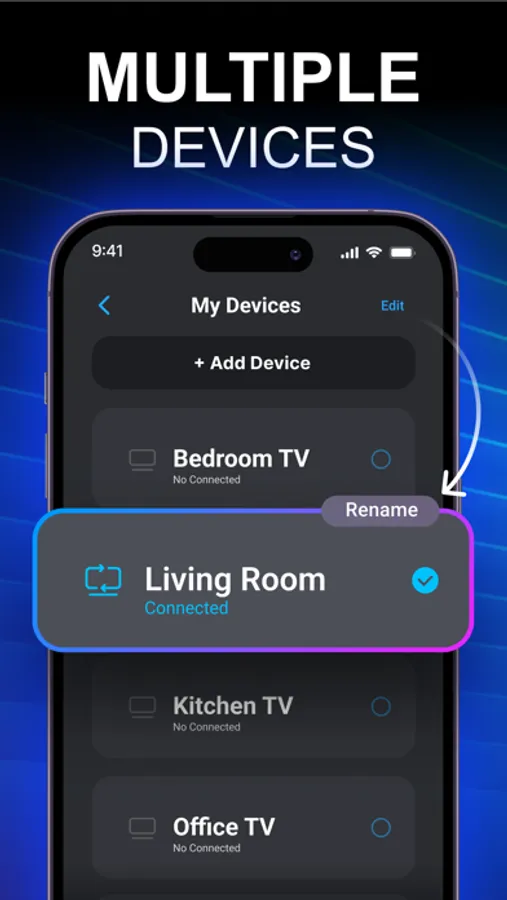 Compatible with leading brands such as SAMSUNG, LG, SONY, ROKU, PANASONIC, AndroidTV, and Hesense. Support for TV models from different years of production and screen sizes. A simple connection between your iPhone and your TV over the same Wi-Fi network turns your touchscreen into a comprehensive navigation panel. It replicates all the functions of a traditional remote control.