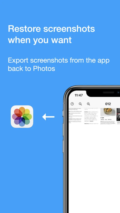 012 is the app that lets you remove all your screenshots from Photos and keep them in a separate place.