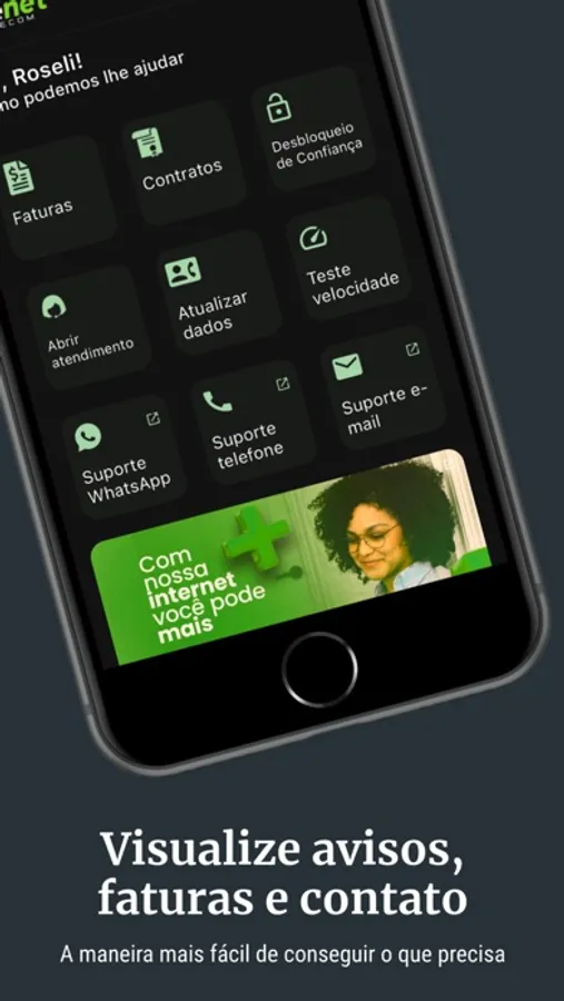 - notificações sobre sua conexão e boletos