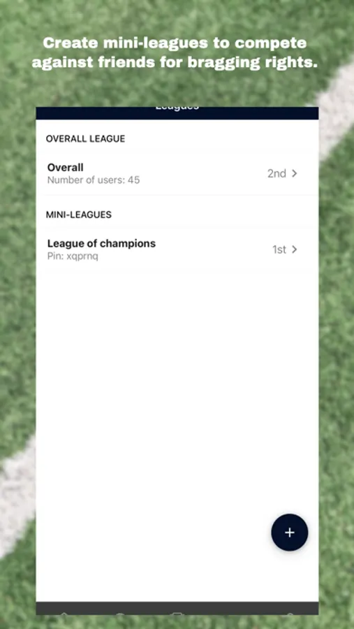 Create virtual leagues and predict the results of games to earn points and compete against friends. Can you predict the winner of the whole tournament?