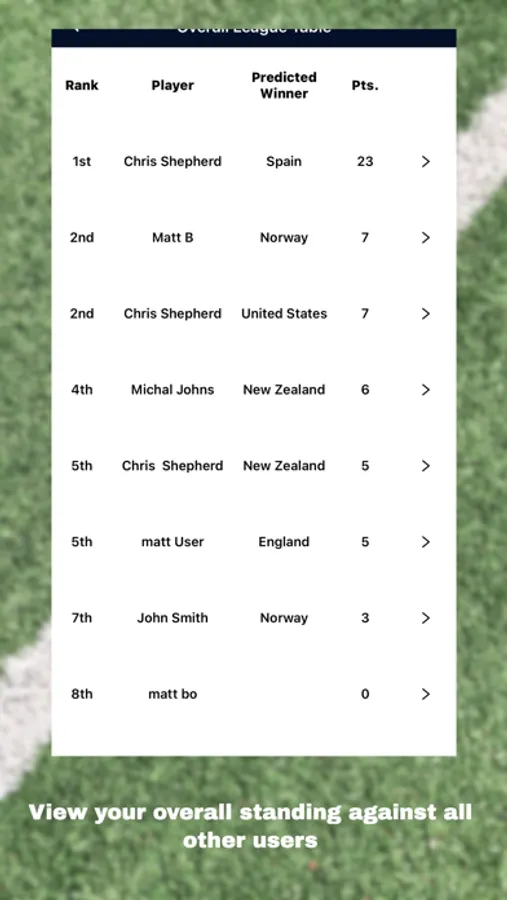 Note: Women's World Cup Predictor is not affiliated with FIFA or any official Women's World Cup organization. The app is designed for entertainment purposes and provides a platform for friendly competition amongst users.