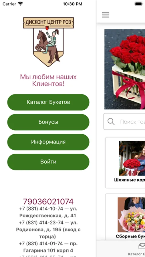 Приложение для заказа цветов в Нижнем Новгороде компании Дисконт Центр Роз
