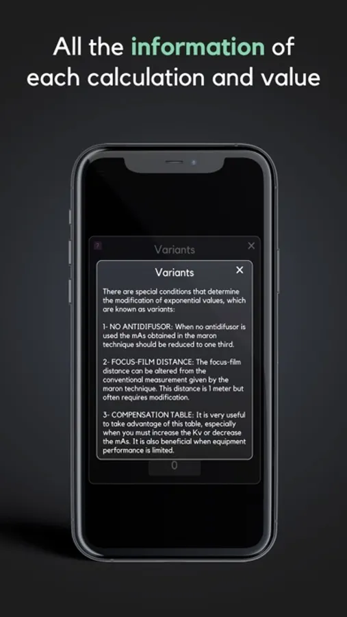 With "RX - Values Calculator" you can acquire the ideal exponential values for your radiographic studies.