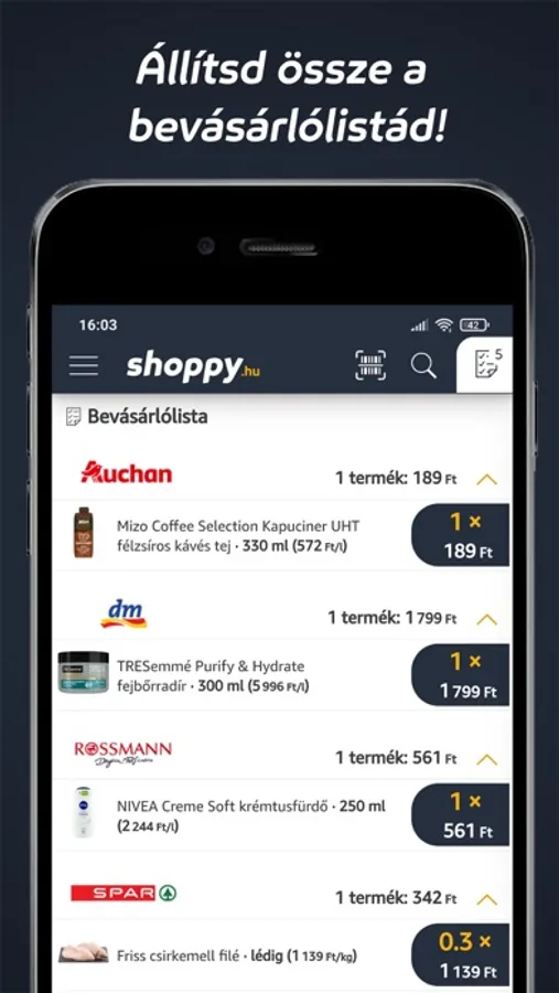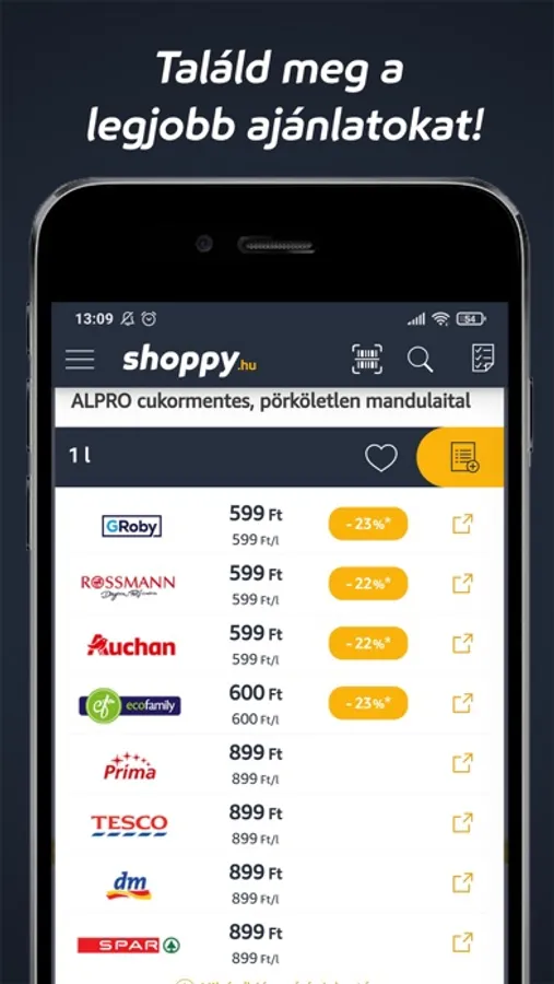 Az alkalmazással lehetőség nyílik a termékek vonalkódos beolvasására, továbbá a bejelentkezés után számos extra funkció érhető el: értesülhetsz az áruházak legújabb ajánlatairól és akcióiról, segítséget nyújtunk a személyre szabott bevásárlólistád elkészítésében, összegyűjtheted kedvenc termékeidet, valamint profilod alatt egyszerűen vezetheted és nyomon követheted vásárlásaidat.