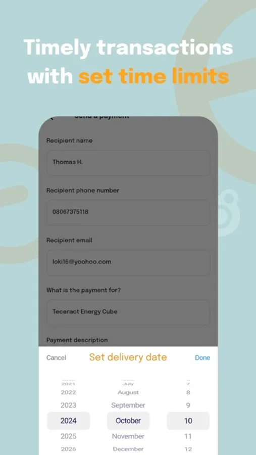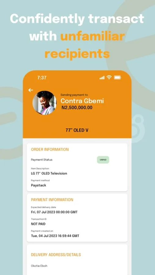 2. Confirmation Feature: Easily release funds to the receiver upon confirmation of delivery. With a simple in-app process, you can initiate the payment release, ensuring a seamless and efficient transaction flow.