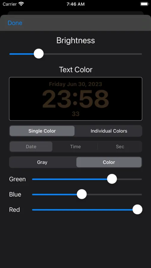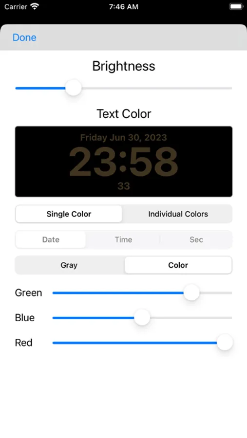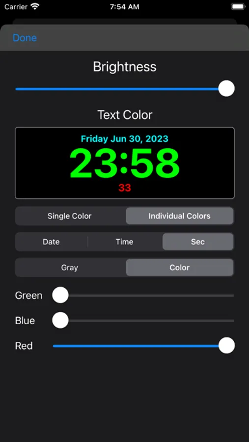 DimClock is a dimmable simple clock app that works with low energy consumption by reducing brightness of backlight of iPhone screen.