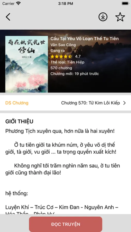 Đắm chìm vào thế giới truyện Tiên hiệp tuyệt vời với ứng dụng Kiếm Các! Tải ngay để khám phá hàng ngàn bộ tiểu thuyết hấp dẫn và đa dạng từ mọi thể loại, từ tiểu thuyết, trinh thám, ngôn tình, đến kinh dị và hài hước. Với giao diện đẹp mắt và dễ sử dụng, ứng dụng của chúng tôi đem đến cho bạn trải nghiệm đọc truyện thú vị và thoải mái. Hãy tải ứng dụng ngay bây giờ và bắt đầu hành trình phiêu lưu trong thế giới tiểu thuyết đầy màu sắc!