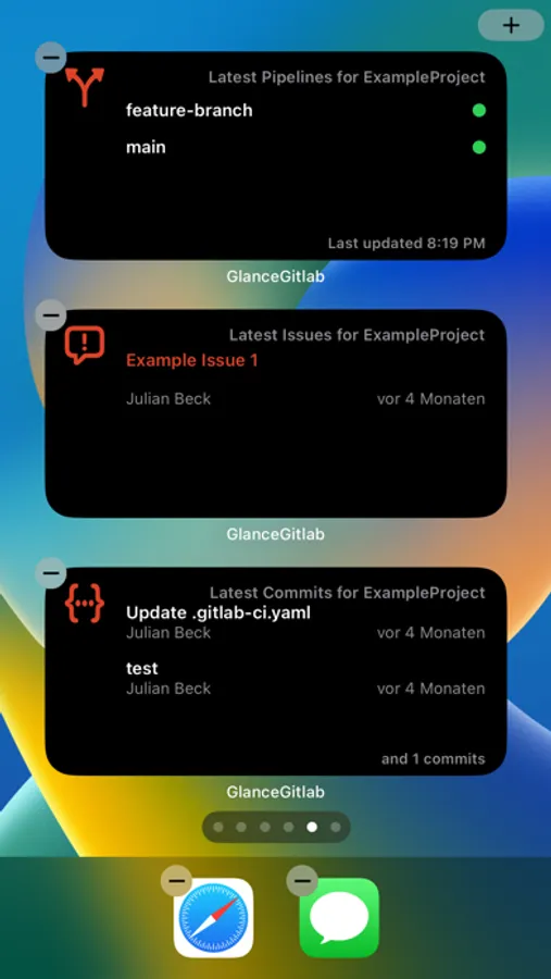 - Add Widgets for all Commits, Issues, Pipelines and assigned Merge Request